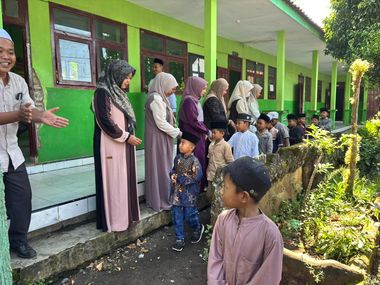 Kegiatan hari pertama ini tidak langsung diisi dengan pelajaran di kelas, melainkan difokuskan pada penguatan karakter dan silaturahmi. Sejak pukul 07.00 WIB, para guru telah bersiap menyambut kedatangan siswa di depan gerbang sekolah dengan senyuman dan sapaan khas.